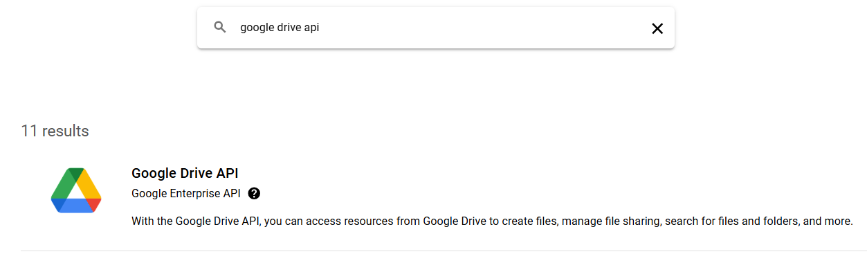 Then search for google drive api and click on it. An enable button will appear, click on it to enable. Do the same for Google Docs API.