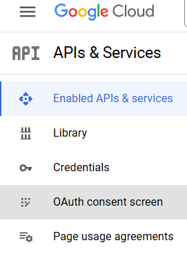 Once both APIS are enabled go back to the APIs & Services menu and click on OAuth consent screen. Then click on external option and create.