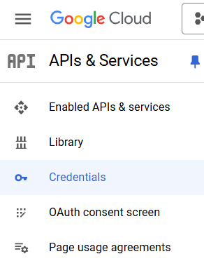 Once created, open the project (using the same tab as previous step) and click on the three lines left of the Google Cloud logo, go to APIs & Services and Enabled APIs & services.